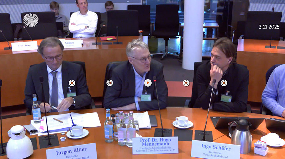 Politische Anerkennung für Case Management - Prof. Dr. Mennenemann bei der Anhörung im Deutschen Bundestag